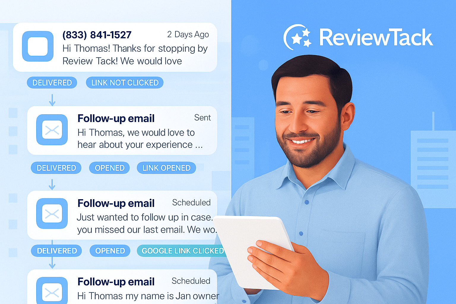 Forget clunky software and manual follow-ups—ReviewTack puts your online reputation on autopilot.